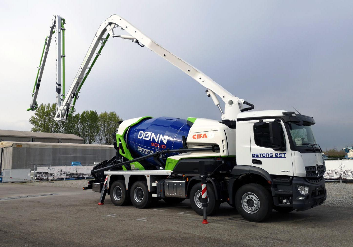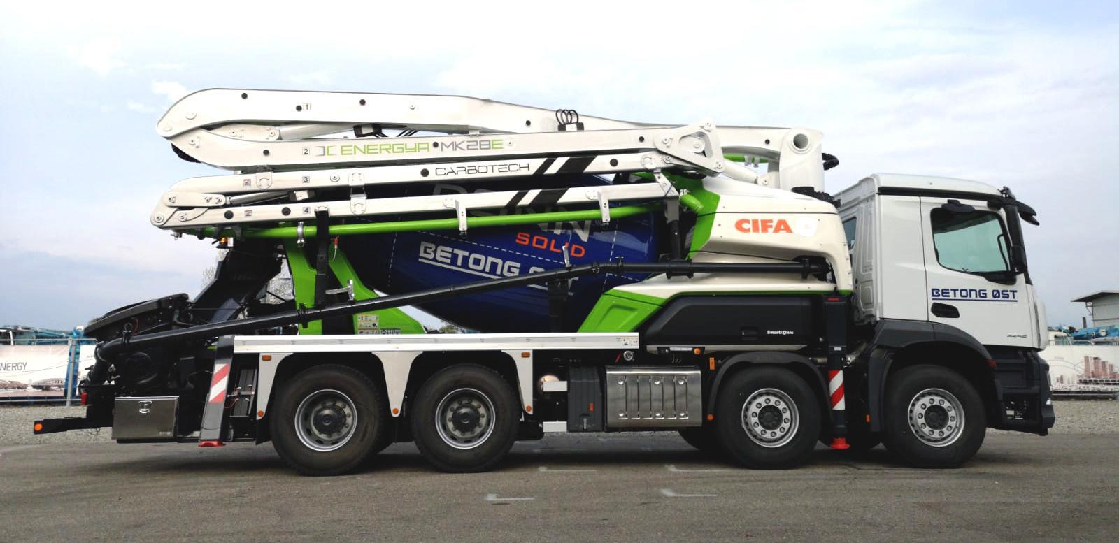 目前,这款混合动力搅拌车在欧洲市场深受消费者欢迎。因为它不仅节能环保,同时,也做到了低噪音。而且在性能方面,并不会比传统的柴油动力搅拌车差。因此,CIFA又在这款搅拌车的基础之上,给它加上了臂架,推出了世界上第一台混合动力搅拌臂架泵车-Magnum MK28E。