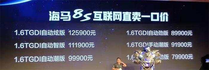 对此,海马汽车力求通过营销方面的转型,来提振目前的下滑之势。因此海马将联手京东创造出颠覆传统汽车4S店模式的互联网直卖模式。在这一全新模式中,产品由厂家电商直营、4S店转型服务商,价格公开透明,通过商业模式创新,将库存成本、财务费用、店面租金、营销费用大幅削减,最终让利给用户,以此实现超高性价比。据官方表示,今日上市的海马8S比传统4S店模式下的定价让利了约2万元,力求打造出更实惠、便捷的人车生活。