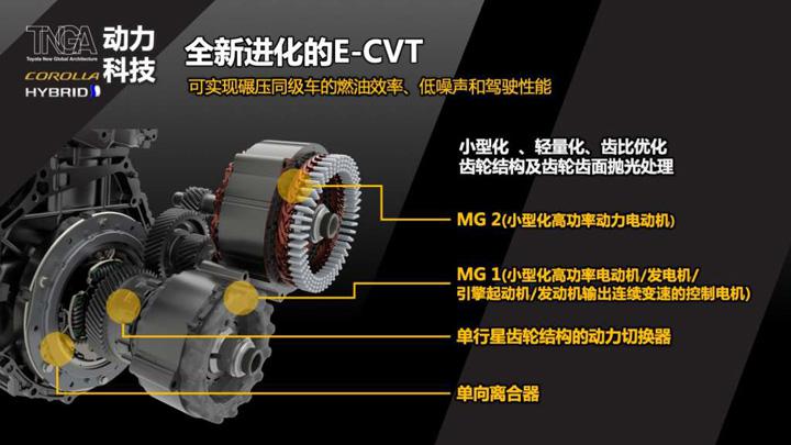 E-CVT双电机的布局由之前的串联式结构,全新设计为现在的并列式排列。使得整体体积更小,结构更加合理。双擎版车型将电池移到后排座椅下方也让后备箱空间得到提升,与燃油车型一样达到470L。