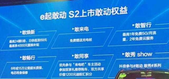 看完上面这些朋友们是不是对比亚迪S2,这款新车感到有些心动了呢?实际上说了这么多,除了外观、内饰、配置等方面的优势,比亚迪S2最能吸引消费者的地方,还是它亲民的定价。8.89万-10.98万的价格在新能源车型里,真心不能说贵。而且,据悉现在购买比亚迪S2 厂家还提供6年15万公里超长质保、电芯终身保修、配置升级、免费附赠充电桩、免费5G流量等优惠活动。这样的价位、如此划算的一款车,实在让人很难拒绝它!
