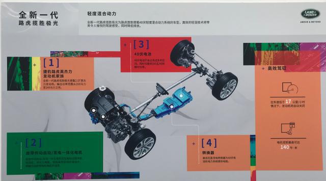 动力方面,全新一代路虎揽胜极光所配备的全新英杰力系列2.0T发动机,与之配备的是全新调校的9速自动变速器,带来最大249马力输出,最大扭矩365牛·米,百公里加速仅需8秒,而9速自动变速器则能为你带来最平顺高效的传动表现。同时还匹配了48伏轻混车型,全新一代路虎揽胜极光的MHEV 48伏轻混系统起步变得更加顺畅,起步时的加速性能更加强悍,在车速低于17公里/小时,这一系统能够自动关闭发动机,提升燃油经济性。