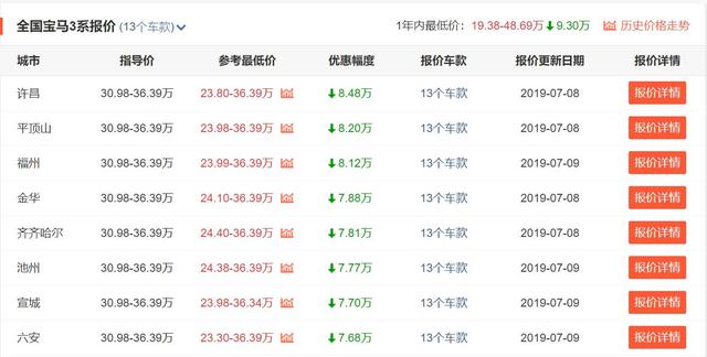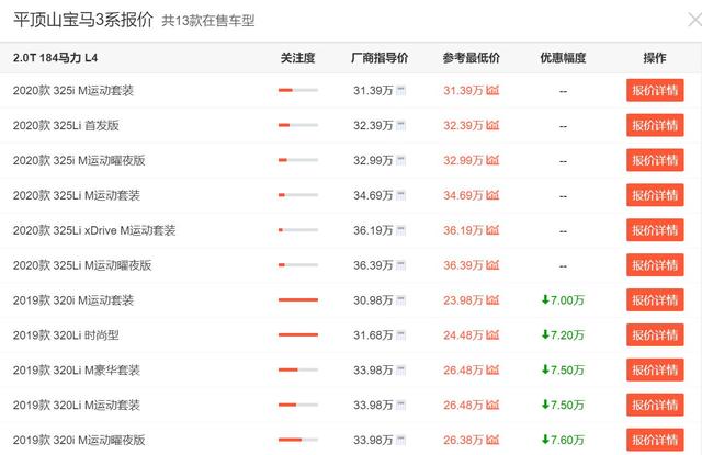 小结:总的来说,以市场为需求导向,宝马可以说是深谙此理,随着全新一代G20三系的上市,代号F30的3系也正在逐渐向市场屈服,而最直观的就是它如今超过7万的优惠幅度,要知道,放在以前这哪里会出现到宝马车型身上,所以我说现款3系的性价比是相当高的。