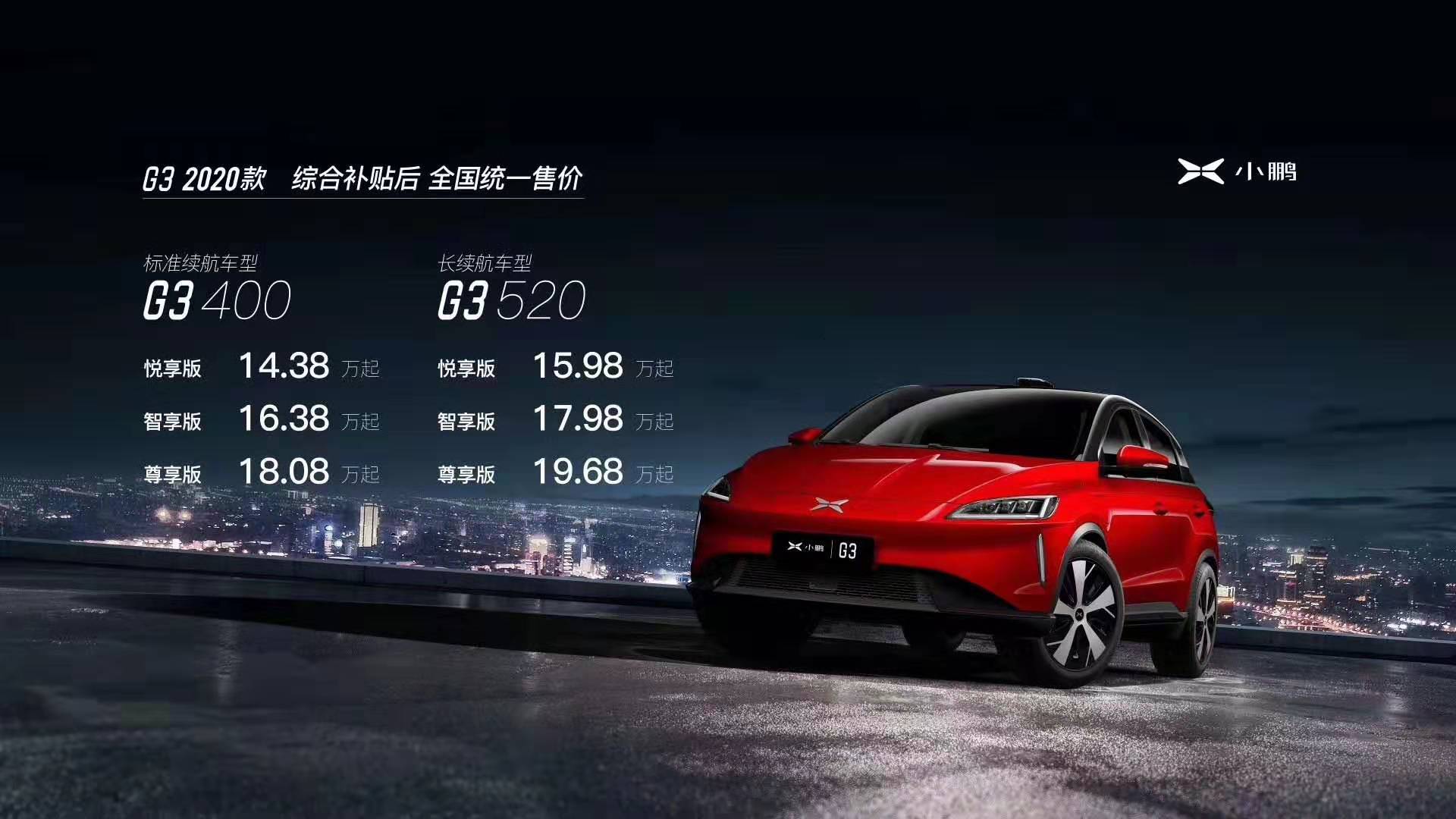 今日,小鹏G3 2020款正式上市,新车分为G3 520、G3 400两个系列,共六款车型,全国统一售价为14.38-19.68万元。综合补贴后全国统一售价区间14.38-19.68万元。支持L2.5级自动驾驶辅助能力,整车涉水深度达到了300mm,是国标的三倍。