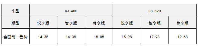动力上,G3 520使用宁德时代新一代方形三元锂电池,能量密度突破180 wh/kg,NEDC综合续航里程长达520km。