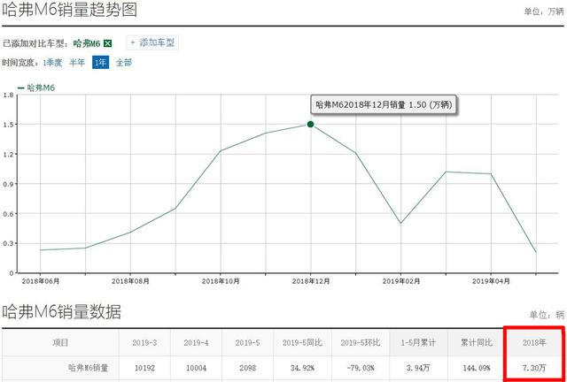 点评:总的来说,在家用SUV细分市场,哈弗M6始终走在前列,2018年累计销量7.30万台就是其产品力最好的证明。而在M6销量领跑市场的背后,代表着的也是消费者对哈弗品牌的高度认可。除了超过500万全球用户口碑证言外,哈弗一直坚持"研发过度投入"战略,并且在全球建立了包括智能驾驶、智能网联、新能源、造型等八个研发中心和技术孵化实验室。目前,哈弗已掌握了中国领先的核心技术,在未来5年内,哈弗的全球研发投入更是将超过300亿。所以,我们完全有理由相信哈弗SUV的未来会越来越好。