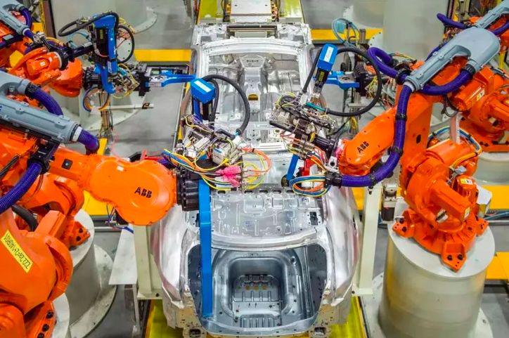 焊装车间拥有307台『瑞典ABB』自动化机器人,平均120s焊装完成一台车。焊装车间还是国内首家具备专制全铝车身工艺的车间,拥有全球最先进的铆接胶合技术和设备、340台机器人,自动化率高达100%。