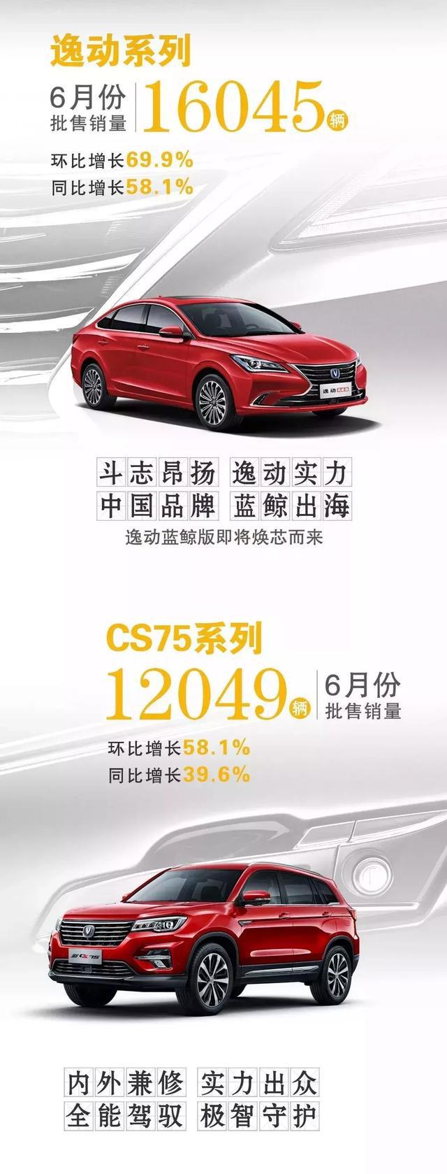 官方数据显示,长安SUV全面爆发,旗下三款主打车型均销量破万,其中CS75系列6月批售销量12049辆,环比增长58.1%;CS35系列6月批售销量10288辆,环比增长30.5%;CS55 6月批售10880辆,环比增长82.7%。下半年,长安汽车SUV将会继续发力,新车将会搭载蓝鲸NE系列发动机,动力更加强劲,并且满足国六排放标准,销量也有望完成新的突破。