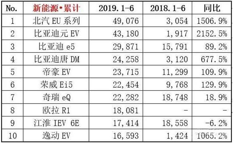 结语:回顾上半年新能源市场的表现,除了5月份同比增幅较低之外,其余月份新能源车型增速都很迅猛。并且6月份赶上了“国五切换国六”、“补贴退坡”等政策的影响,很多车企的车型都迎来了一波热销。