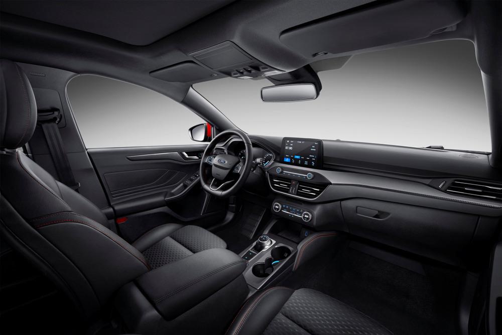 内饰方面,新车继续延续了现款车型的设计语言,配备了平底运动方向盘、旋钮换档、8英寸悬浮式中控触摸屏等组件。同时ST-Line车型专属配备了真皮包裹的平底方向盘、碳纤维风格饰条及红色缝线,看上去战斗气息十足。