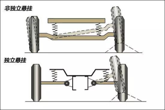 了解了悬挂的组成,再来谈分类。悬挂分为两类:非独立悬挂,独立悬挂。