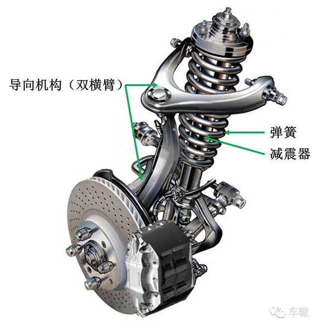 悬挂主要由三个部分组成:弹性元件、阻尼元件、导向机构。
