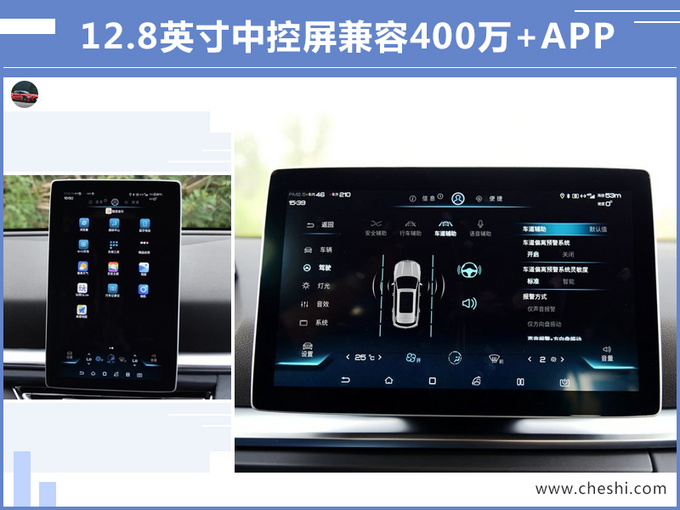 3.中控12.8英寸可旋转大屏相当于安卓平板,兼容400万+APP,可以实现微信视频通话、玩游戏等;
