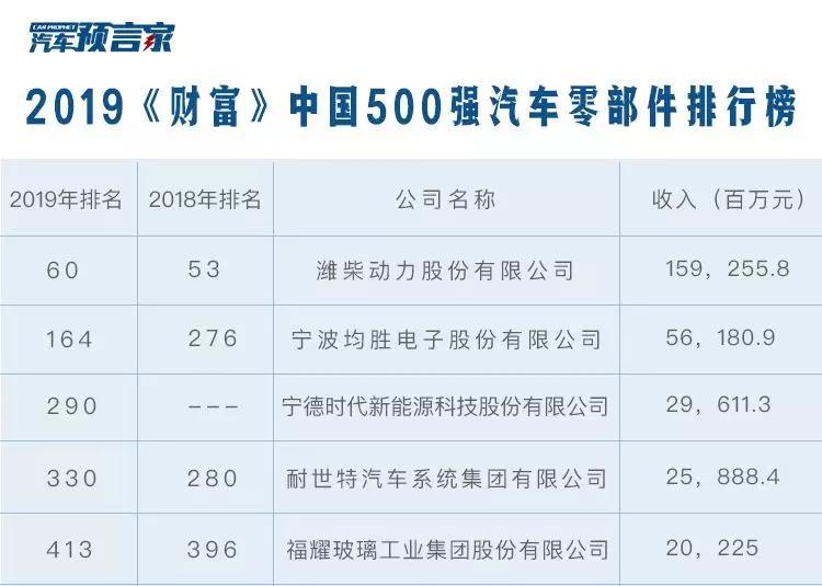 2019《财富》中国500强汽车零部件企业排行榜