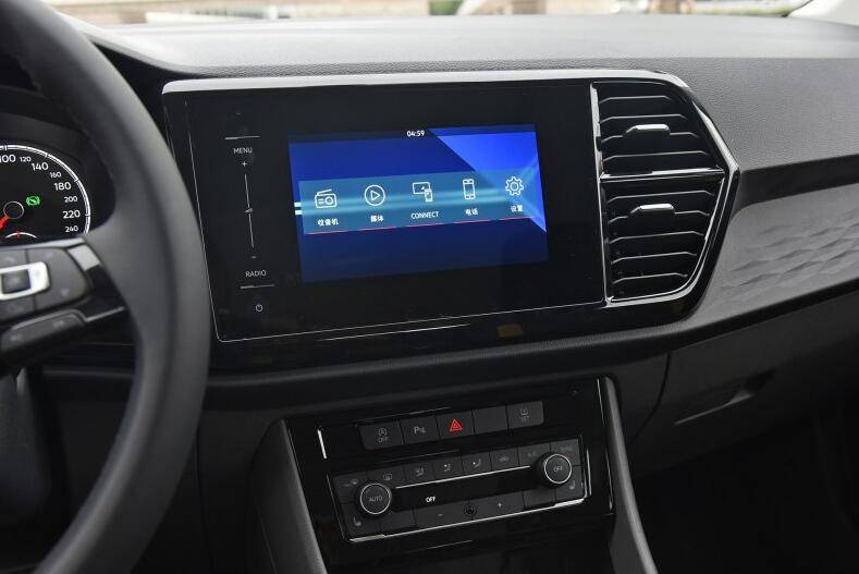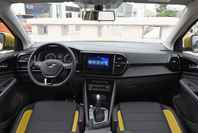 相对于完全变样的外形来看,捷达VS5的内饰还是能看出大众味道的,不论是略倾向于驾驶员一侧的中控屏幕还是三幅式D字形方向盘,这些都和大众的最新家族设计风格十分接近。但是,在细节之处还是做出了一些有自己风格的设计。例如中控区的空调出风口同一安放在屏幕的右侧,菱形纹路的装饰面板也是亮眼的设计。大面积的黑色烤漆材质的运用一定程度上提升了车内的档次感。
