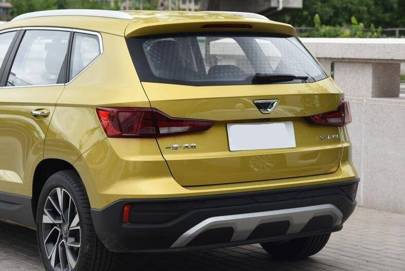 车身侧面采用较为硬朗的设计,由前大灯贯穿至车尾的平直腰线,使得侧面看上去更加修长。同时环绕车窗边缘的镀铬饰条,体现出不错的档次感。另外值得注意的是,捷达VS5与途观采用了相同的短悬长轴的设计,并且车身比例似乎也同途观十分相近。在尺寸方面,长宽高分别为4419/1841/1616mm,轴距为2630mm。