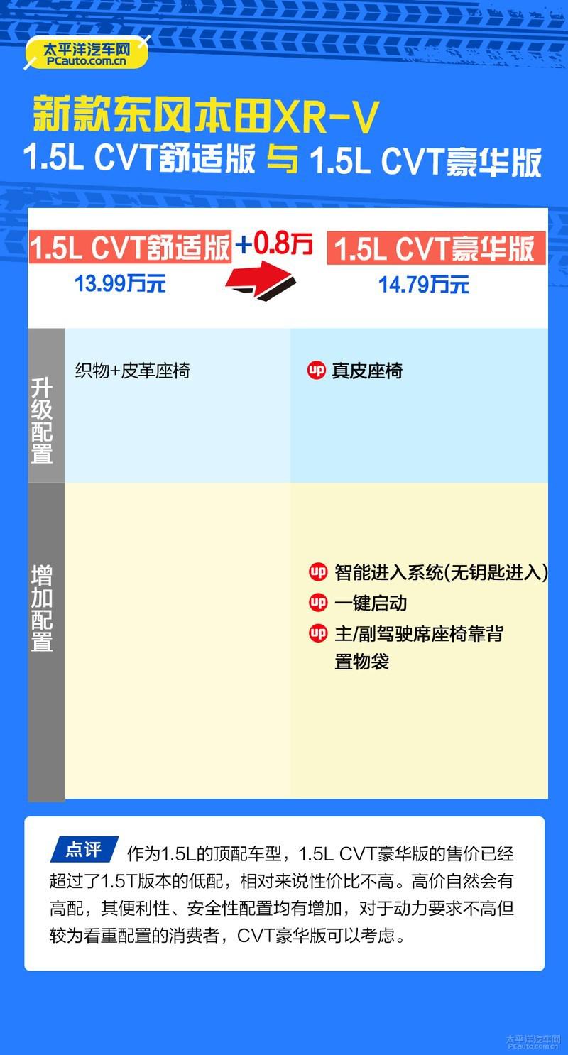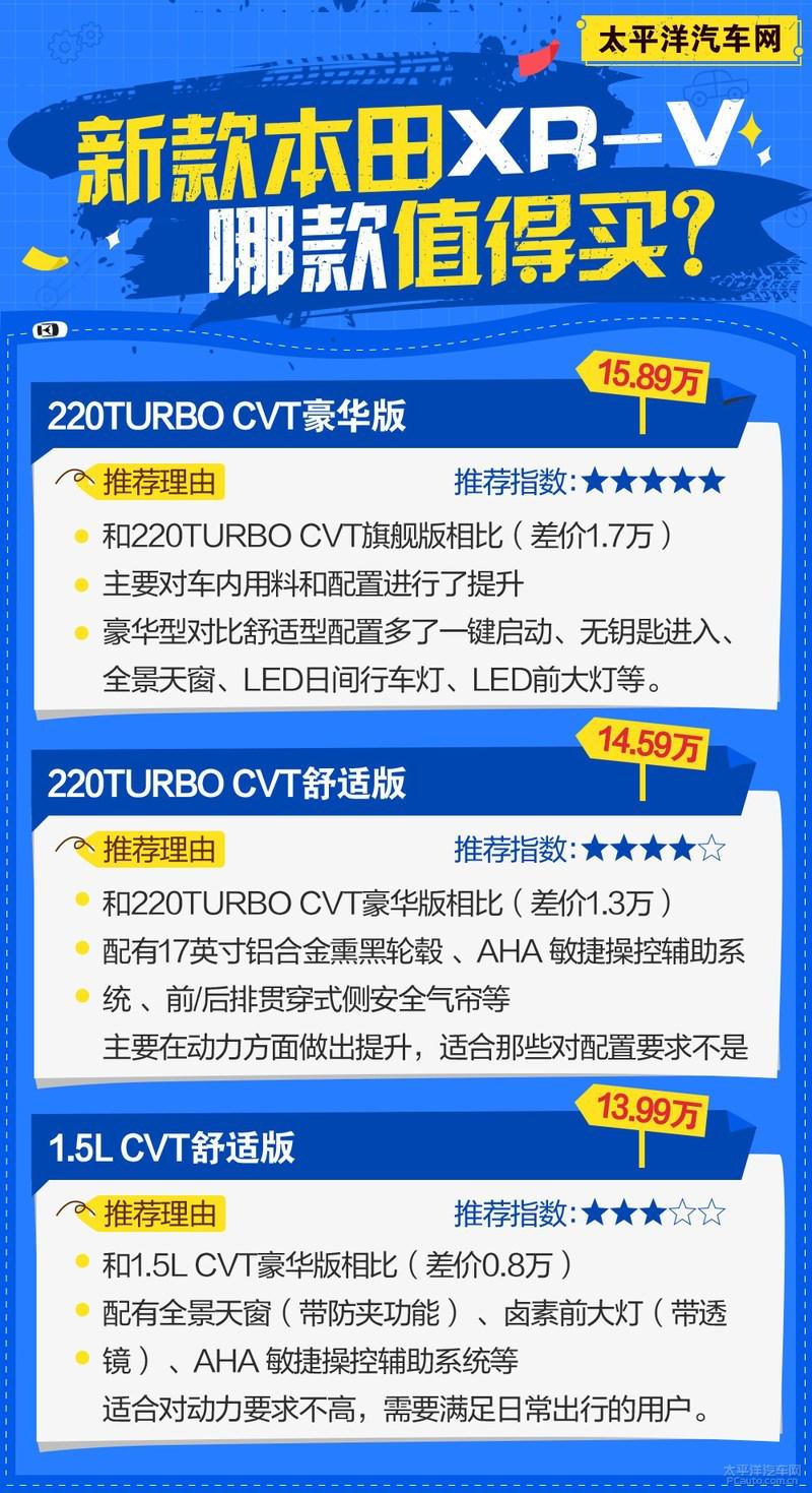 点评:新款XR-V本次改款,在维持原有优势点的情况下,把原来一些以前欠缺的地方给填补上了,配置、外观样式、动力都有了不同程度的优化改进,对于心宜XR-V但是还没购买的消费者来说绝对是一件好事情。