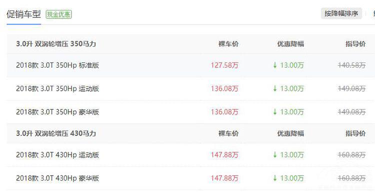 2019年上半年,国内汽车销量持续下降,整体大环境不容乐观。为了提高销量,各汽车经销商不得不采取降价措施。可以说目前无论是汽车厂商或是经销商都在面临不小的压力,那么,这时候买车会便宜多少呢?小编选取了重庆地区四款豪华品牌车型,一起来看看它们的优惠行情如何。