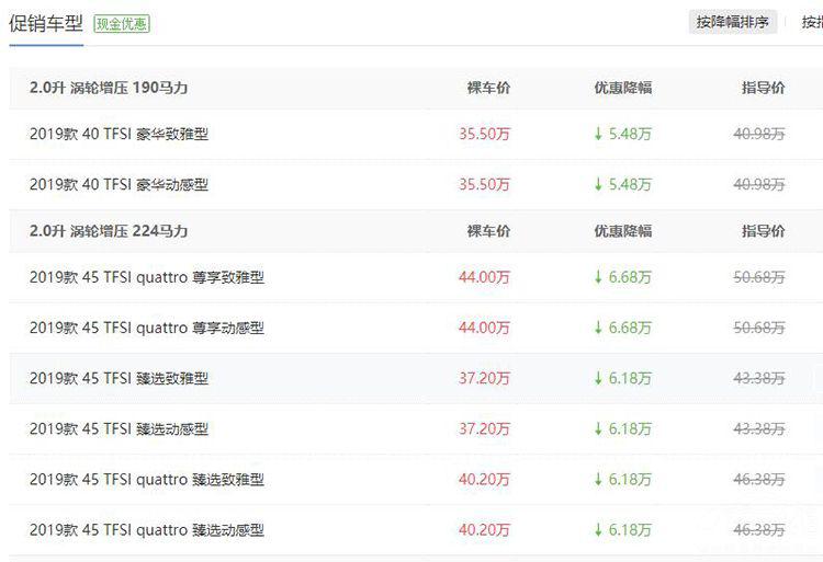 目前A6L重庆地区最高有6.18万元的优惠,这样的优惠已经可以看出奥迪新A6L的诚意了。目前4S店暂无附加条件,并且全系车型0元首付!按揭18期免息,36期低息。