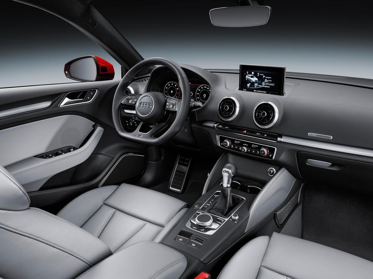 在内饰上,一汽-大众奥迪A3的内饰采取了名为“Less is more”的设计语言中控布局简洁耐看,采用了大面积的软质材料,同时还提供了多种不同材质的饰条供选择,车门板上与手接触的位置均有Alcantara材质和皮革包裹,质感表现到位。全系标配7英寸的中控多媒体液晶屏,仪表盘处的显示屏也升级为彩色屏,同时还支持Apple Carplay手机互联。通过中央扶手处的MMI系统旋钮面板控制,操作简单又容易上手。同时也能提高在行驶过程中盲操作的安全性。