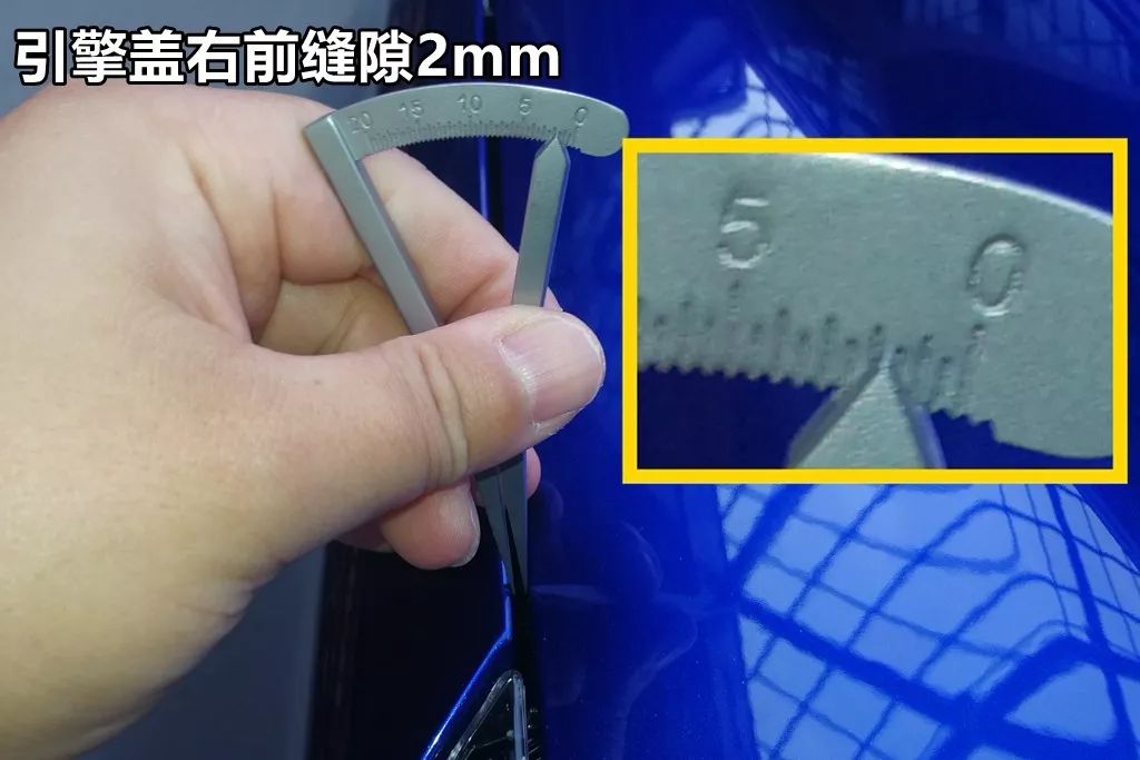我们在HS7上选取的钣金缝隙测量点共有4对8组,分别是引擎盖靠近A柱下端左右缝隙、引擎盖前端靠近车灯的左右缝隙,尾厢门上端靠近后挡风玻璃左右缝隙,尾厢门下端靠近底部的左右缝隙。基本上可以这样说,这4组数据足以反映一款车的钣金拼装水准。