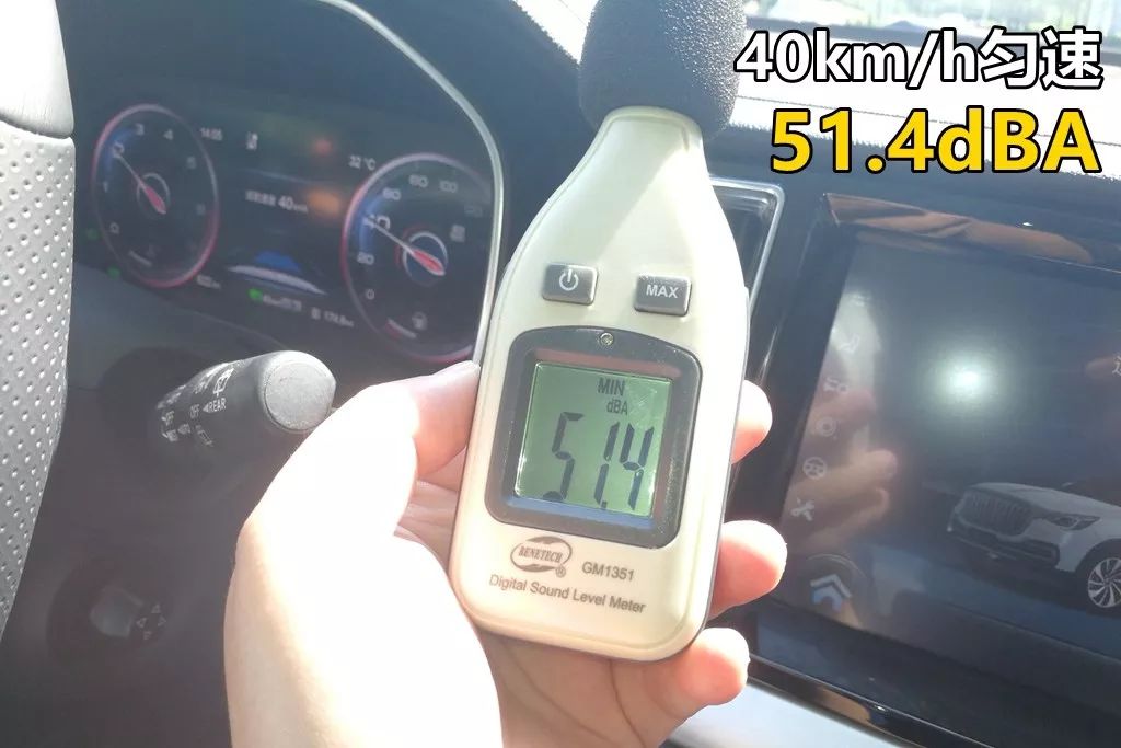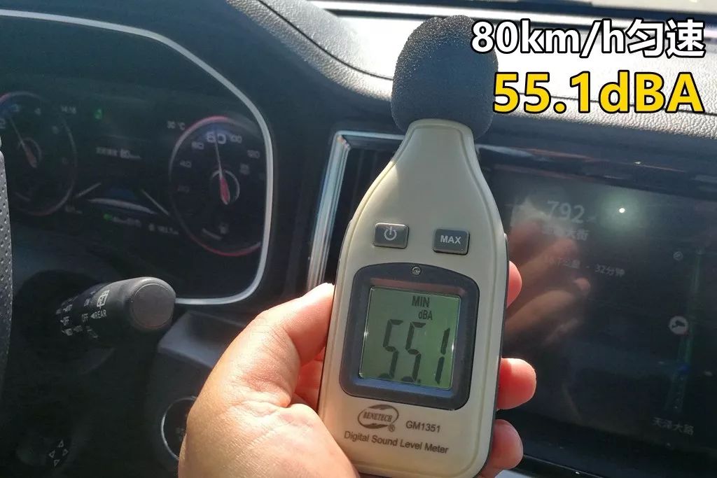 在40km/h、60km/h和80km/h匀速状态下,HS7车内最低噪音分别为51.4dBA、53.1dBA和55.1dBA——可以看到,相邻的两段车速之间,车内最低噪音相差不超过2dBA,这绝对是全球顶尖的水准!要知道,特斯拉Model 3就算没有引擎噪音,其80km/h车内最低噪音都达到57.3dBA了。