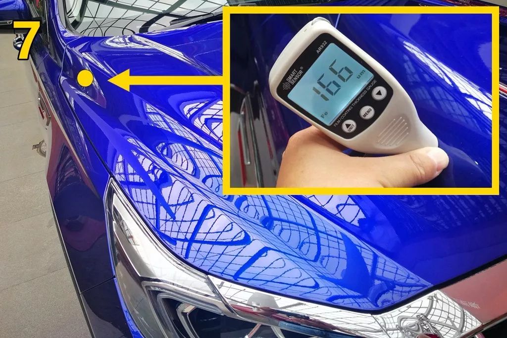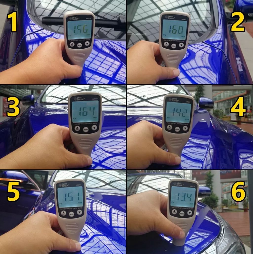 我们选择的车漆测试点为引擎盖上7个不同的测试点。基本上这一组数据就能反映一款车的车漆整体工艺水准。HS7的引擎盖冲压工艺造型相当复杂,这对于喷漆工艺是极大的考验。
