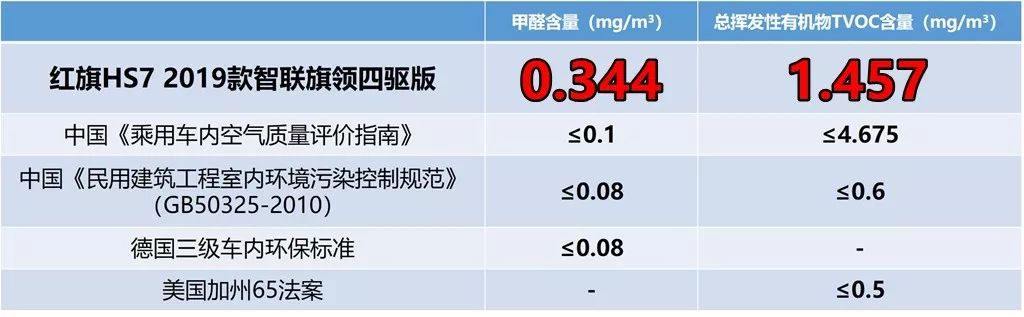 是的,你没看错,超标了。但是有一说一,由于车内空气质量标准不是强制标准,所以几乎所有的新车都会出现车内甲醛和TVOC超标的情况。以我们之前的测试经验来看,车内空气每立方米甲醛含量低于200毫克的,就足以拿到“A”评分了;而201-400毫克可以算“B”——所以,在这一项测试上,HS7的最终评分是B,这是“一汽系”(含合资)目前最好的成绩。