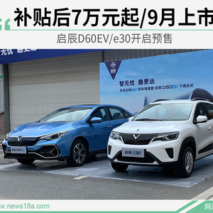 东风启辰将在今年推出3款新能源产品,其中东风启辰D60 (配置|询价)EV/e30于今年4月正式亮相。7月15日,网通社从东风启辰官方获悉,启辰D60EV在郑州工厂下线,并与启辰e30同步开启预售。其中启辰D60EV补贴后预售价为14-16万元;启辰e30补贴后预售价为7-8万元。