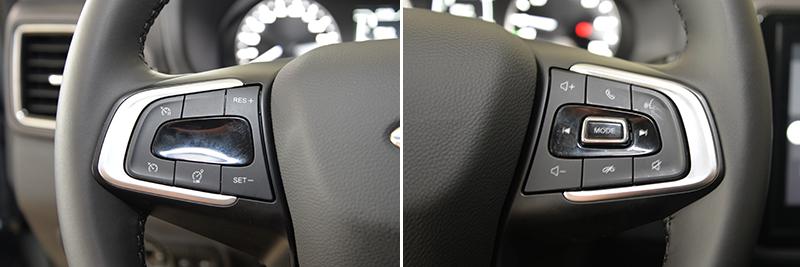 方向盘左侧的功能区设计了多组控制按钮,包括大灯高度调节、外后视镜电动调节、折叠,以及车辆电子限滑功能开关。