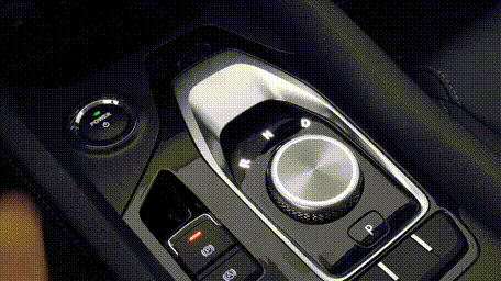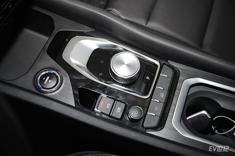 换挡杆区域是车内看起来比较有科技感的地方,金属质感的换挡旋钮可以随车辆启动/关闭而上升/下降,旋钮左侧是电子手刹和AutoHold功能开关,另外还有一个小的黑色旋钮可以单独控制中控屏幕的开闭。