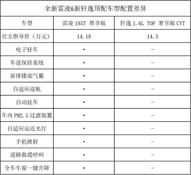 相对而言,新轩逸虽然高配车型的配置水准也不低,包括主动安全、车联网等配置都不会落下,与全新雷凌相当,但在配置的覆盖率上,全新雷凌仍然更胜一筹。分别对比两车的低配和顶配车型,大家都能够看出端倪。