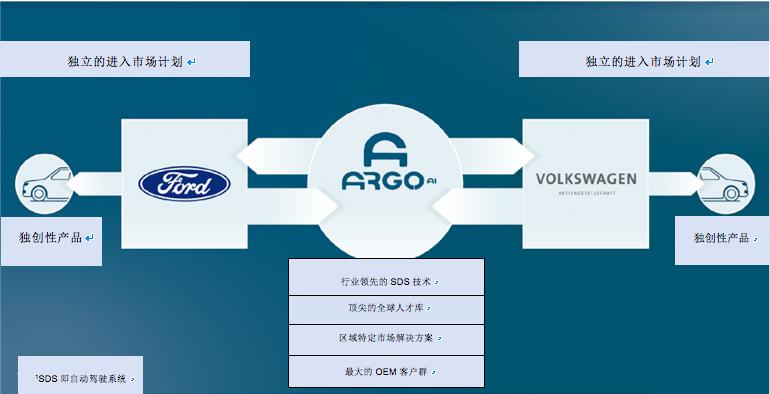 在2017年,由谷歌和优步自主技术部门的前高管创立的初创公司Argo AI被福特以10亿美元收购,成为福特旗下的自动驾驶技术子公司,而通过此次大众与福特的深化合作,大众也会将资金及技术注入到Argo AI公司。大众对Argo AI的投入为26亿美元,包括10亿美元资金及价值16亿美元的自动驾驶技术子公司AID。作为交易的一部分,大众将在未来三年内从福特购买价值5亿美元的Argo AI股份,两家汽车集团将以相同的持股比例,实现对Argo AI的控股。