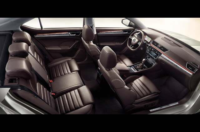 车尾部分,同样增加了横向视觉效果。新增尾部镀铬饰条,与标志性的双C型尾灯相连,视觉宽度增加。SKODA的字母取代了车标,排列在尾部中央,也是斯柯达目前常用的设计变化。