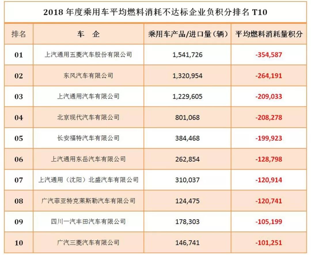 那么双积分政策执行至今已经一年多了,各家企业的双积分成绩又是如何呢?7月2日,工信部、商务部、海关总署、市场监管总局联合发布公告公示了2018年中国乘用车企业平均燃料与新能源积分情况,对141家车企“双积分”进行公示,其中排名垫底的TOP10如下。