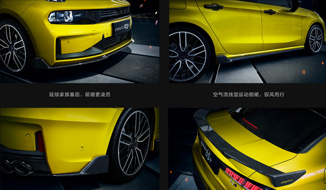 以上只是基本的动力总成和参数。领克03+,不只是动力强,而是从内到外散发出的盛气凌人感。领克03+基于领克03打造,运动套件的加入使其变得更加战斗。车身一周采用了全碳纤维空气运动套件,除了营造出性能车的姿态之外,这些套件能够提供40KG的下压力(领克03为11KG),为疾驰提供更稳健的支持。同时,“+”标识可以在车身多个部位找到,比如尾翼的+Downforce、发动机舱的+Performance、机舱加强杆的+Stabilizer和锻造轮毂+Forged等,这是一种性能车的认同感,跟奔驰“AMG”,宝马“M”,奥迪“RS”具有同样的力量。