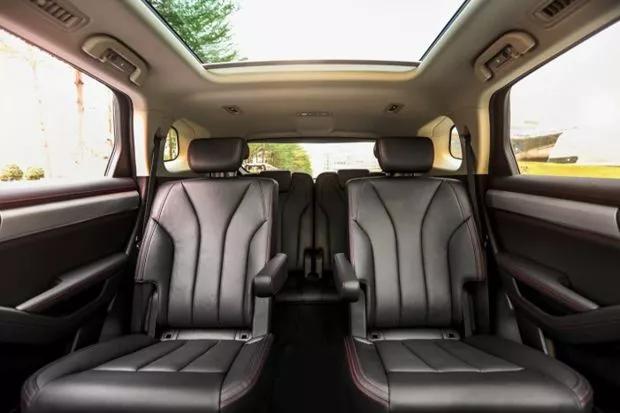 新车第二排座椅同样提供扶手配置,支持手动调节前后和靠背,座椅侧边有一键放倒座椅的拉手,只是第三排座椅的体验就一般了,仅适用于短途乘坐。值得一提的是,专属的第二排座椅有比较体贴的设计,诸如座椅坐垫和靠背填充物比较厚实,扶手可以多角度固定,中间过道的宽度也不狭窄,进出第三排比较方便。