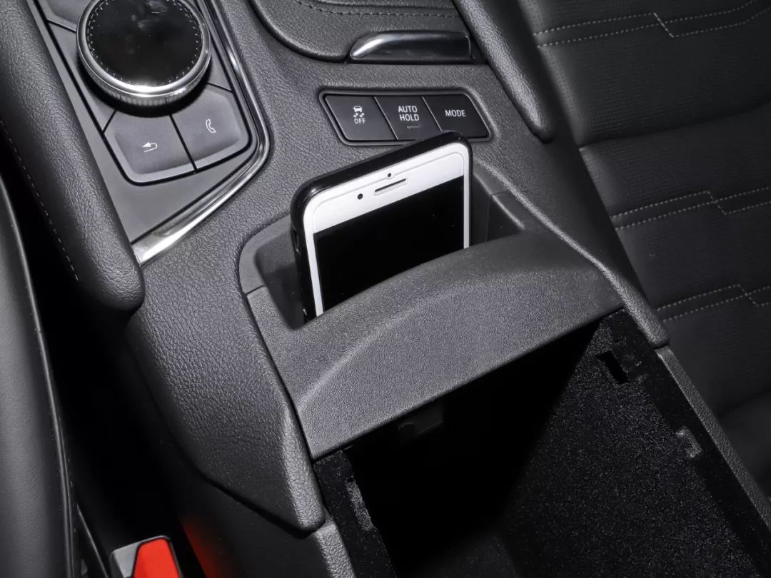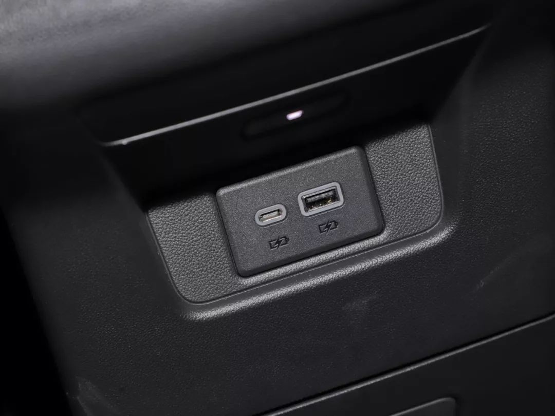 储物空间的分布合理,触手可及,可满足日常放置小物件的需求,同时USB与Type-C接口分别在前后排都有,其中前排2个接口在扶手箱内,后排2个接口在出风口下端,手机无线充电装置在扶手箱前端储物槽内。