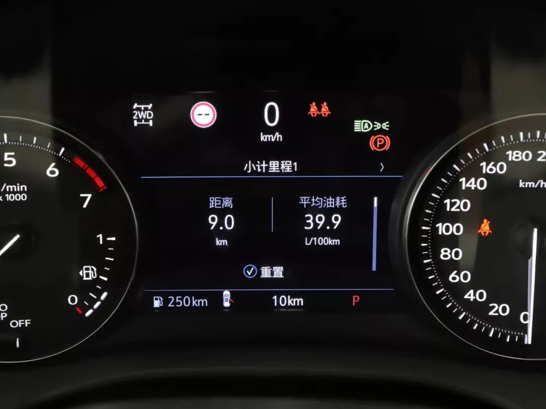 仪表盘为8英寸液晶屏幕显示,可切换屏幕显示车辆状态信息、多媒体、导航、夜视摄像等内容,同时实拍的顶配版车型还配备有HUD抬头显示。