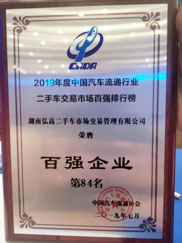 作为湖南地区新型二手车有形市场代表——弘高车世界总经理戴佳女士受邀参与了本次大会主论坛及交易市场发展论坛,并在7月18日颁奖晚宴上荣获中国汽车流通协会授予的“2019年度中国汽车流通行业二手车交易市场百强市场”、“中国二手车流通行业模式创新奖”及“中国二手车流通行业杰出贡献奖”。