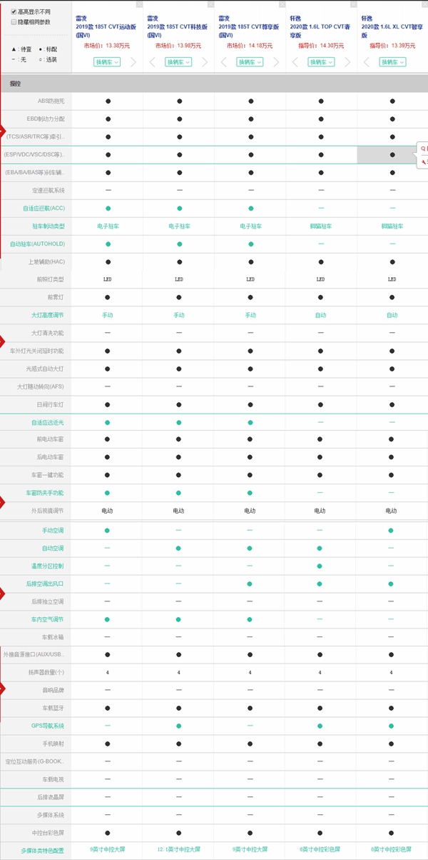 轩逸第一款主销车型售价为13.39万元主要对比极具性价比的雷凌13.38万元的运动型与售价13.98万元的科技型,轩逸第二款主销车型为售价14.30万元的,它只能对比雷凌14.18万元的顶配车型。
