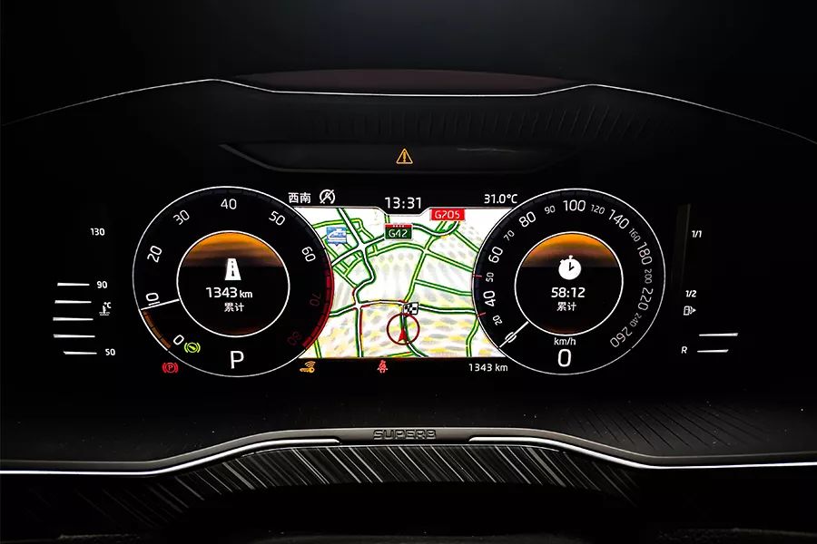 移步至驾驶座,传统仪表盘已经被10.25寸全液晶数字仪表所代替,并且有多种模式可供选择。在地图显示模式中,两个仪表盘中间显示地图,并且在即将到达红绿灯路口时,能够在屏幕中显示车道标识,这一个功能现在已经在大众旗下多款车型中运用。实际体验下来,带给驾驶员的反馈十分清晰,在路线变化的时候,并不用扭头看中控屏,直接扫一眼仪表盘,便可知接下来的路线。