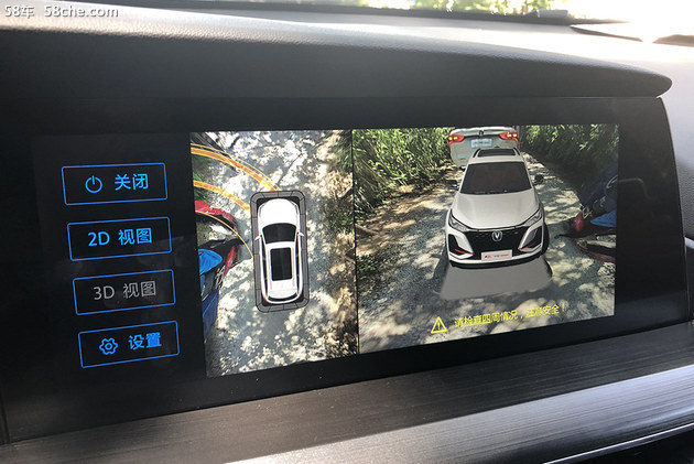 挡杆后方是电子驻车、自动驻车、摄像头选择、自动泊车等功能的按钮。CS75PLUS的全景影像很有意思,如果你觉得能普及2D视图就已经是同级产品中的良心配置,那我得告诉你,这家伙还能支持3D模式显示。这还没完,你觉得后视轨迹线还没完全普及对吧?这家伙还能显示前进时的轨迹线,超不超前?