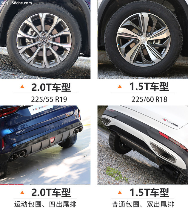 从现场提供的车辆来看,1.5T与2.0T车型在造型方面的差异很小,除了轮圈的造型和尺寸不同之外,也基本上只能从车位的导流板和排气布局上看出端倪。