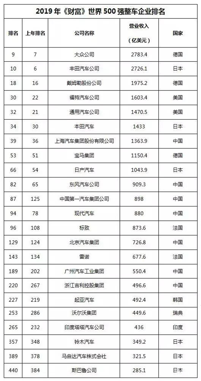 2019年《财富》杂志500强汽车行业榜单中最引人关注的变化,在于大众汽车夺回已连续两年被丰田占据的榜首位置。值得注意的是,丰田汽车公司自2017《财富》世界500强首次超越大众后,2018年也在汽车制造领域位列第一。
