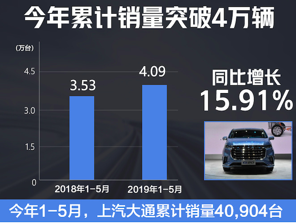 上汽大通作为推动行业发展的先行者,首创了汽车C2B智能定制模式,在车市整体下滑的情况下大通却是逆势上涨,在2019年1-5月交出了五连涨的亮眼数据。