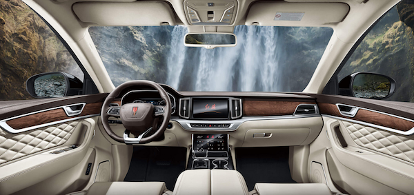 内饰设计方面尽显东方审美的典雅与内敛,仪表台和中控台上的屏幕尺寸恰到好处;中控台从整体到局部细节的造型都使用了很多平直线条或矩形元素,气氛营造的十分庄重。中控台基本被木质饰板、金属装饰条、缝线等软质材料完全覆盖。门板和座椅上包裹的皮质也十分细腻,并带有缝线点缀。车内的豪华感和科技感都不错,整体风格而言更偏向浓厚的商务感。