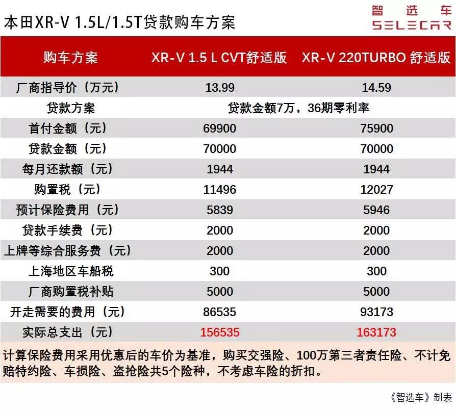 对于消费者而言,220TURBO车型的吸引力还是相当强大的。不过相比于1.5L自然吸气车型,XR-V的1.5T车型在购车成本,养车成本上会贵多少呢?今天小智就以热度较高的XR-V 1.5L CVT舒适版和XR-V 220TURBO CVT舒适版为例,为大家好好算算这笔帐。