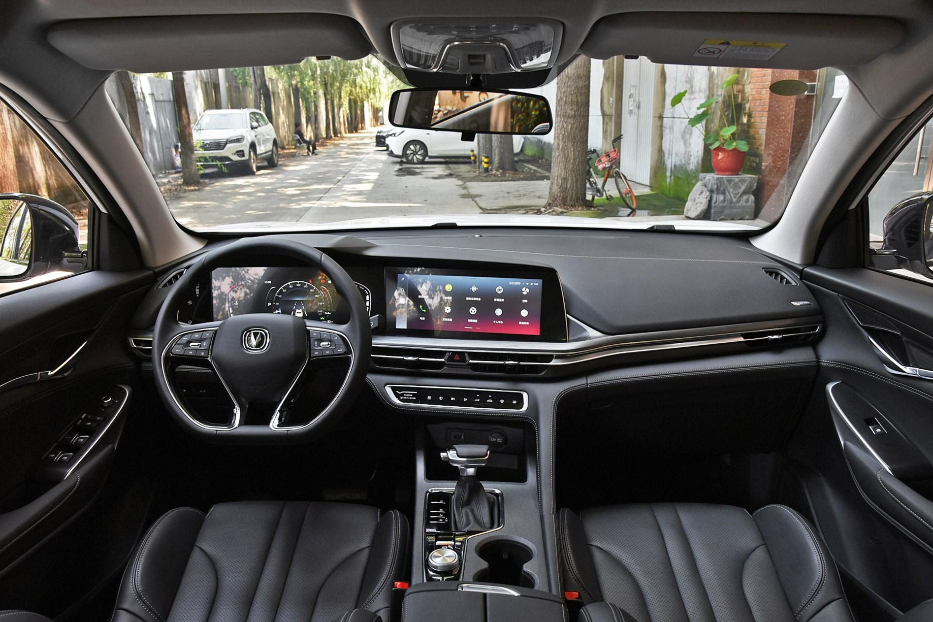 长安CS75 PLUS运动版采用了运动型方向盘,平底设计配合外圈的真皮包裹和内圈的烤漆设计,手感很不错。不过美中不足的是方向盘只支持上下调节。双12.3寸液晶显示屏应该是车内最吸引眼球的配置了。仪表盘有”自定义模式、普通模式、运动模式”三种模式可以选择,显示效果细腻。仪表盘左侧的驾驶辅助功能区采用了触控设计,高级感十足。仪表盘右侧的中控大屏搭载了梧桐智能车连系统,并提供两年免费流量,地图和多媒体功能可以实现分屏显示。