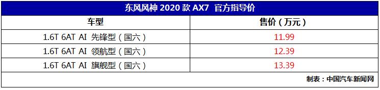 7月25日,定位于“智慧生态SUV”的东风风神2020款AX7在中国贵州天眼正式上市,此次上市新车搭载1.6T发动机共推出三款车型,全系满足国六排放标准,官方指导价为11.99-13.39万元。