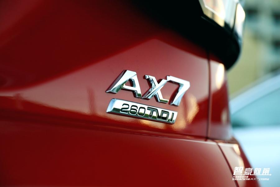 外观方面,2020款AX7车身同现款产品数据保持一致,依然保留其同级最大轴距、车身宽度以及丰富的收纳空间等优势。前脸增加的全新星空格栅,展示出新车未来感和科技感;车身尾部增加TVDI技术标识同贯穿式LED尾灯,增加时尚感的同时也更有辨识度。